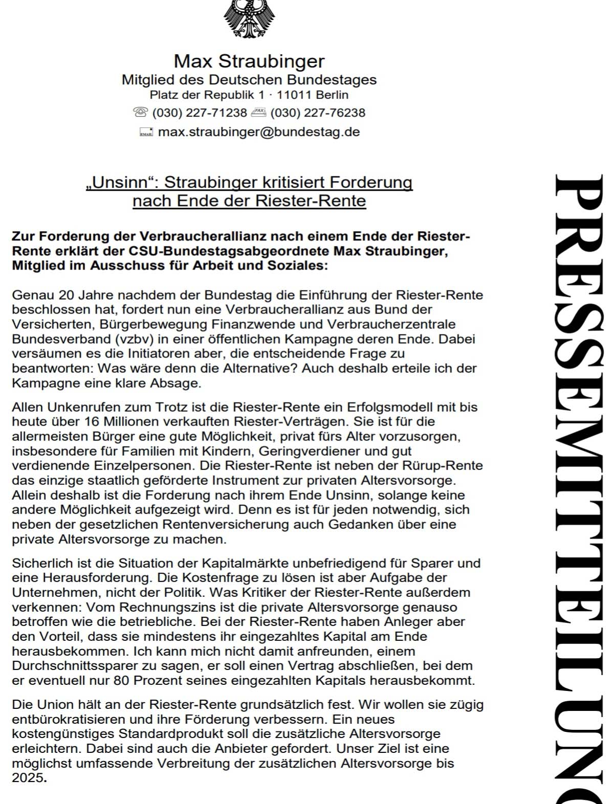 Riester zu stoppen, ist alternativlos, auch wenn Straubinger anderer Meinung ist – aus Sicht eines Versicherungslobbyisten natürlich verständlich.