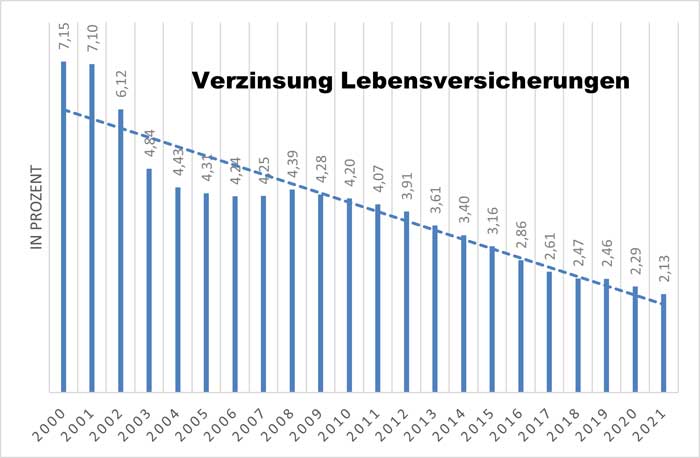 Wer’s nicht glaubt, muss sich nur die jüngste Pressemitteilung des Branchenführers Allianz durchlesen. Das heißt es: „Die in der Gesamtverzinsung enthaltene laufende Verzinsung liegt für Perspektive bei 2,4 Prozent, für Klassik bei 2,3 Prozent.“ Die Inflation in Deutschland liegt 2021 der Europäischen Union zufolge 2021 bei 3,1 Prozent. Jeder sollte jetzt eine einfache Rechnung aufstellen und von der Gesamtverzinsung die Inflation abziehen – er käme dann auf minus 0,8 Prozent: