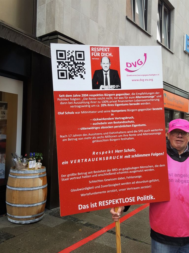 Viele von uns haben sich dann direkt auf das Veranstaltungsgelände vor der Bühne an der Marktkirche begeben, um dort unsere Fragen zur Abschaffung der Doppelverbeitragung sowie der ausstehenden Entschädigung zu stellen. Leider wurden auf der eigentlichen SPD-Veranstaltung überhaupt keine Fragen – weder an Bundeskanzler Olaf Scholz, noch an den amtierenden Landeschef Stephan Weil, zugelassen. Das war schon sehr enttäuschend für uns alle, aber auch für andere Teilnehmer der sehr großen Veranstaltung.