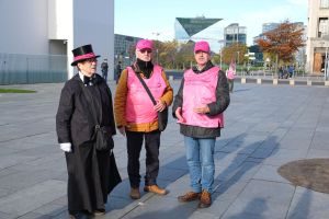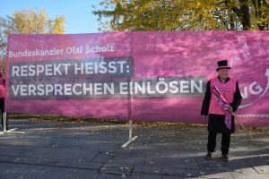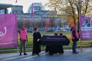 Außerdem konnte ein DVG-Brief mit Forderungen an einen Mitarbeiter des Kanzleramts überreicht werden. Die DVG-Mitglieder konnten zufrieden sein, zumal am Ende MdB Matthias W. Birkwald, Die Linke, vorbeikam und mitteilte, dass er zwei Tage später bei der Befragung der Bundesregierung im Bundestag erneut die Frage an Bundeskanzler Scholz erneuern wolle, wann dieser nun den Stopp der Doppelverbeitragung durchsetzen wolle. Das Ergebnis der Befragung im Bundestag folgt zeitnah.
